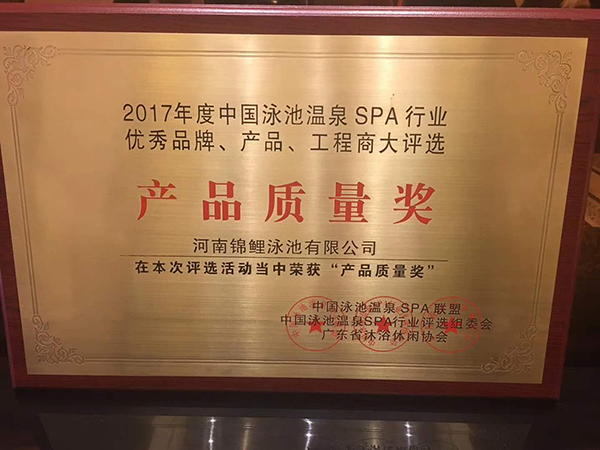 2017年度中國泳池溫泉SPA行業(yè)產(chǎn)品質(zhì)量獎