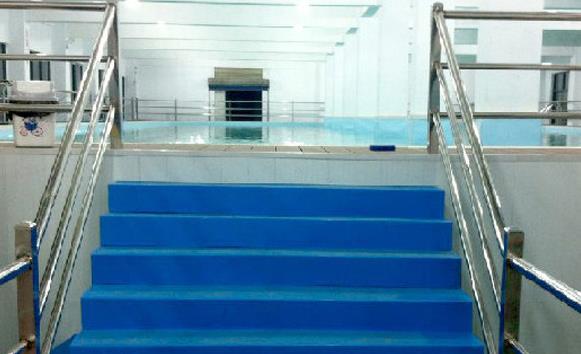 池體樓梯采用一體成型高分子材料,安全美觀、防滑、承載能力強。